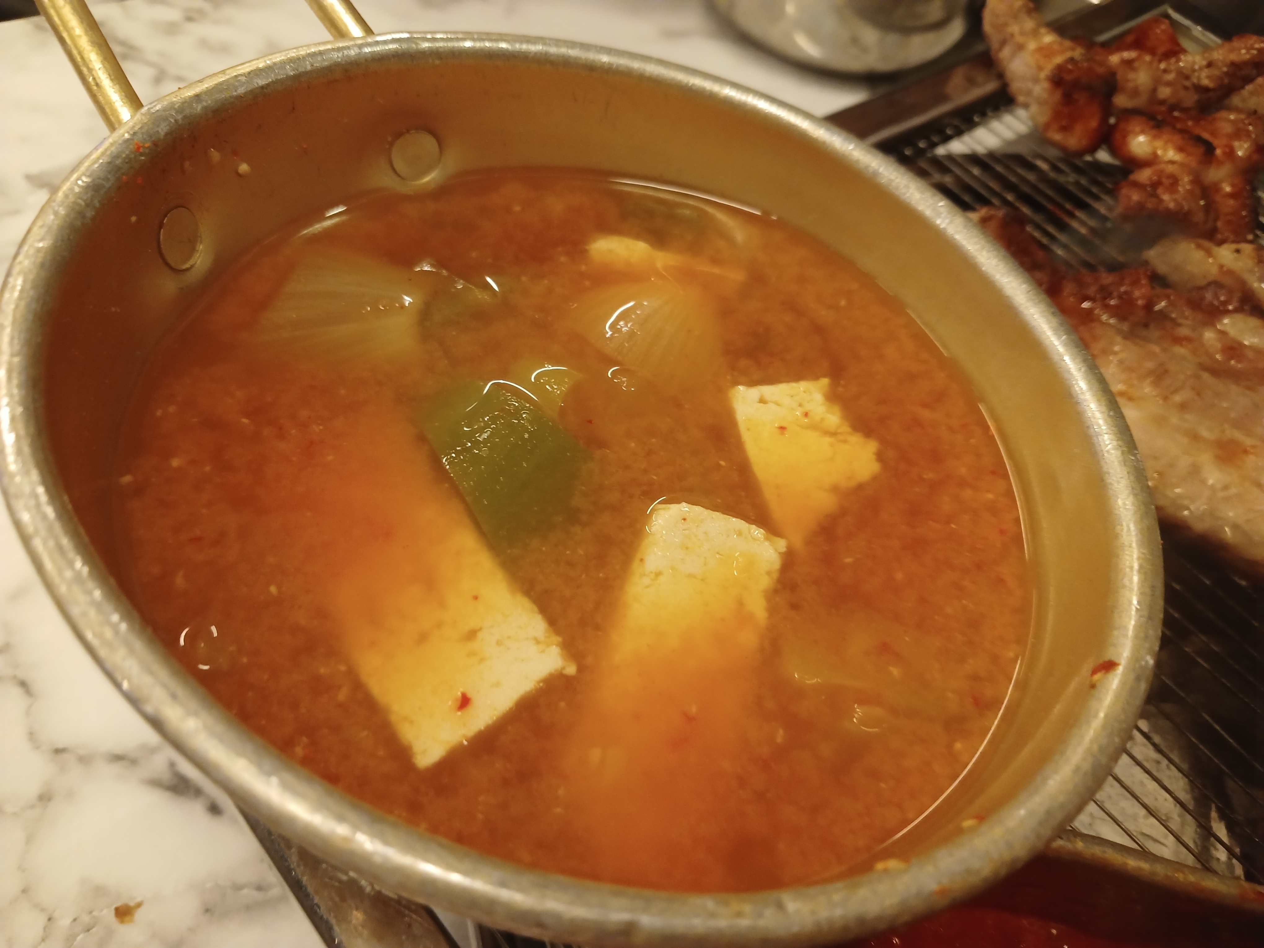 삼겹살에 빠지면 고기를 덜 먹은 것 같은 찜찜함이 들게 하는 된장찌개까지, 이 정도 구성이면 삼겹살이 맛없을 수 없지.