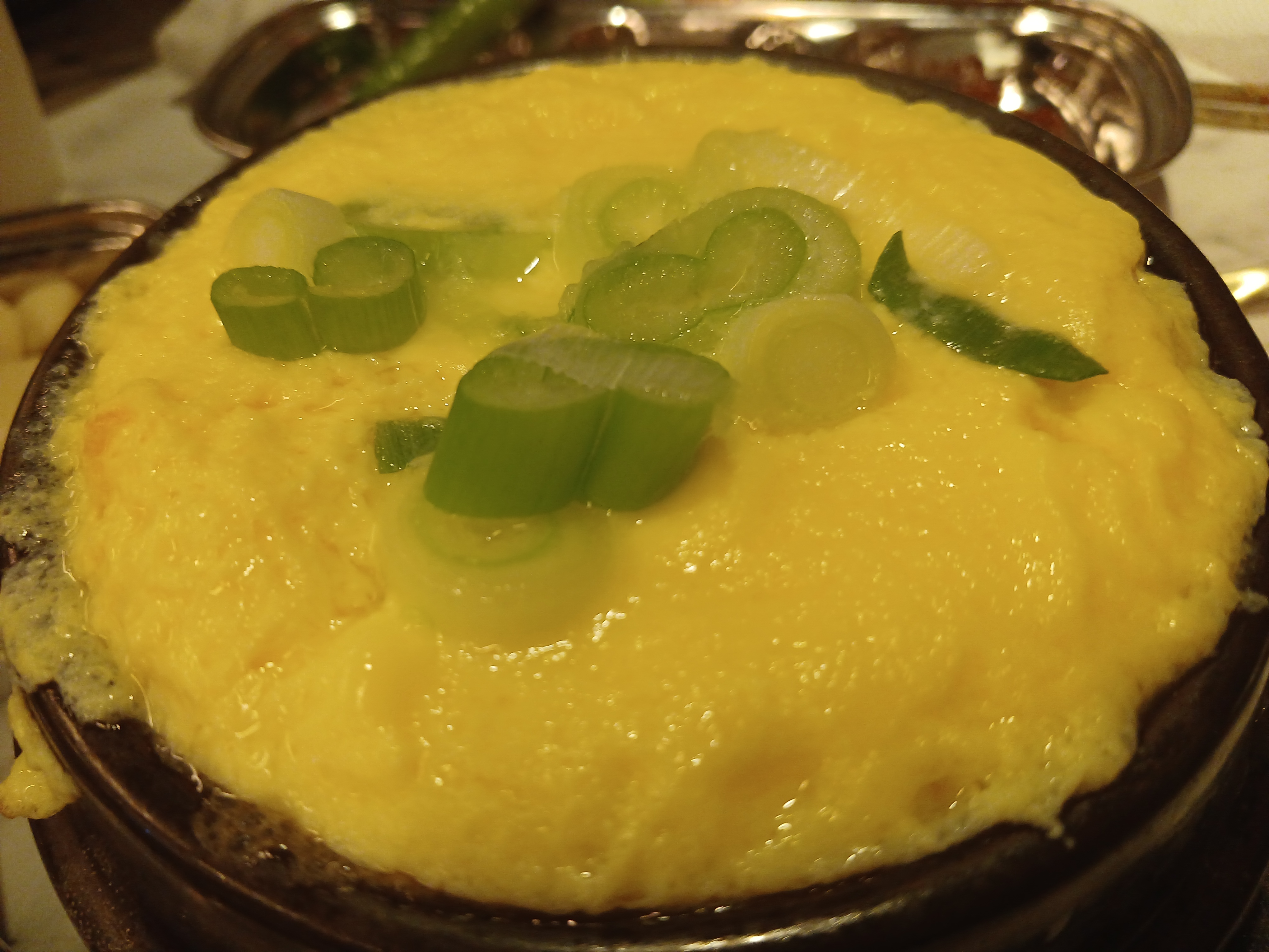 삼겹살집의 대표 사이드 메뉴, 폭탄 계란찜은 테이블을 풍성하게 해 준다.