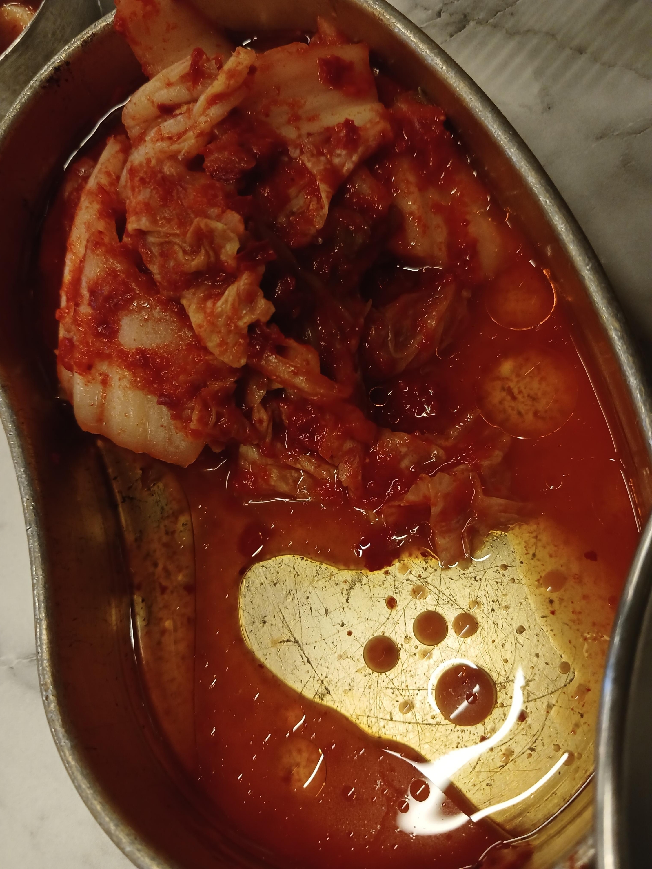 김치는 반찬통을 통째로 불판에 올려두면 맛있는 볶음김치가 된다.