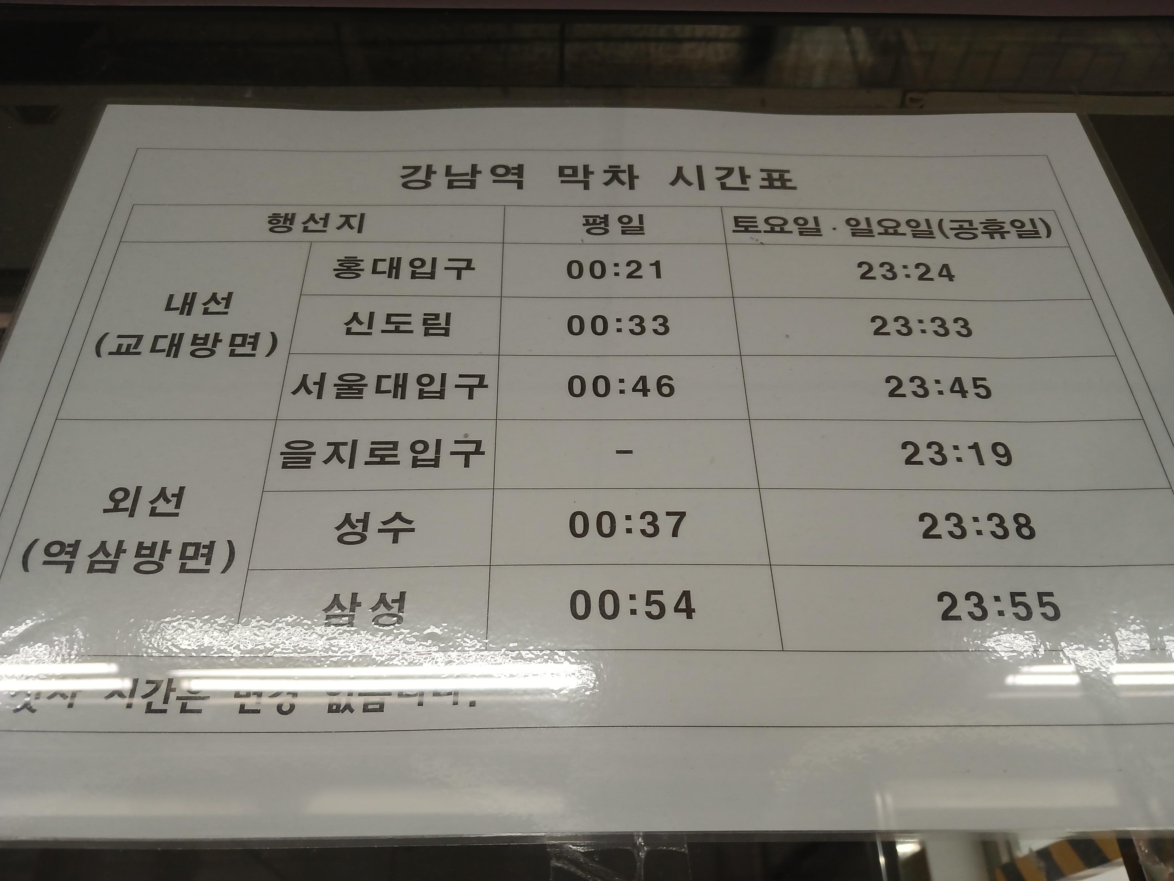(을지로입구역행) 토ㆍ일(공휴일) : 23:18