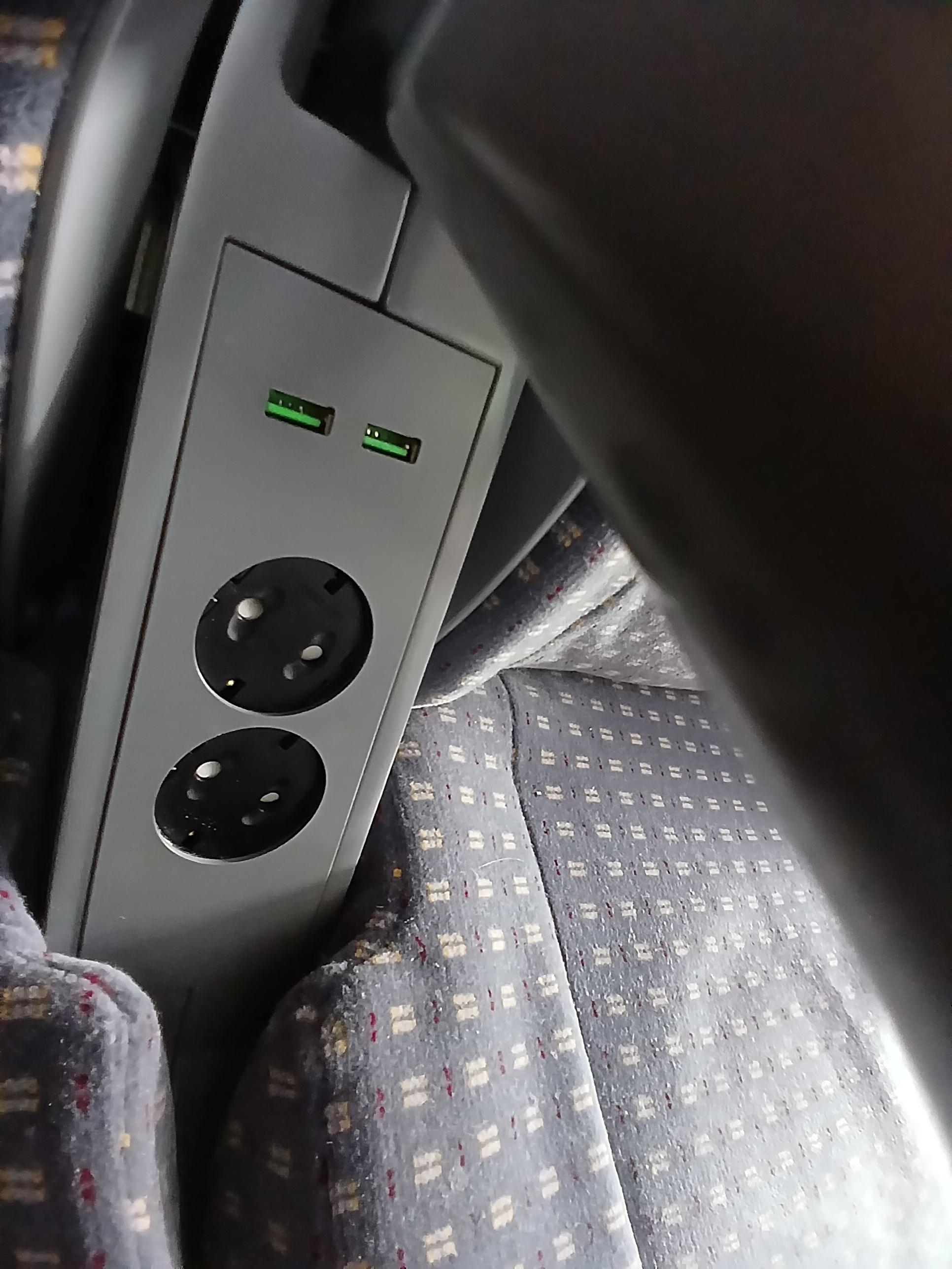 의자와 의자 사이에 충전구와 콘센트가 있다. 노트북 사용, 스마트폰 등을 충전하는데 충분하다.