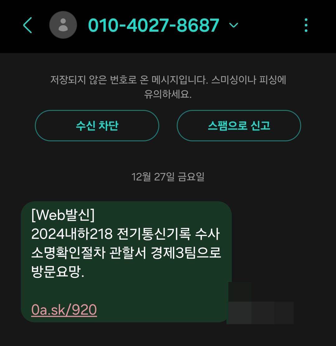 2024내하218 전기통신기록 수사 소명확인절차 관할서 경제3팀으로 방문요망.