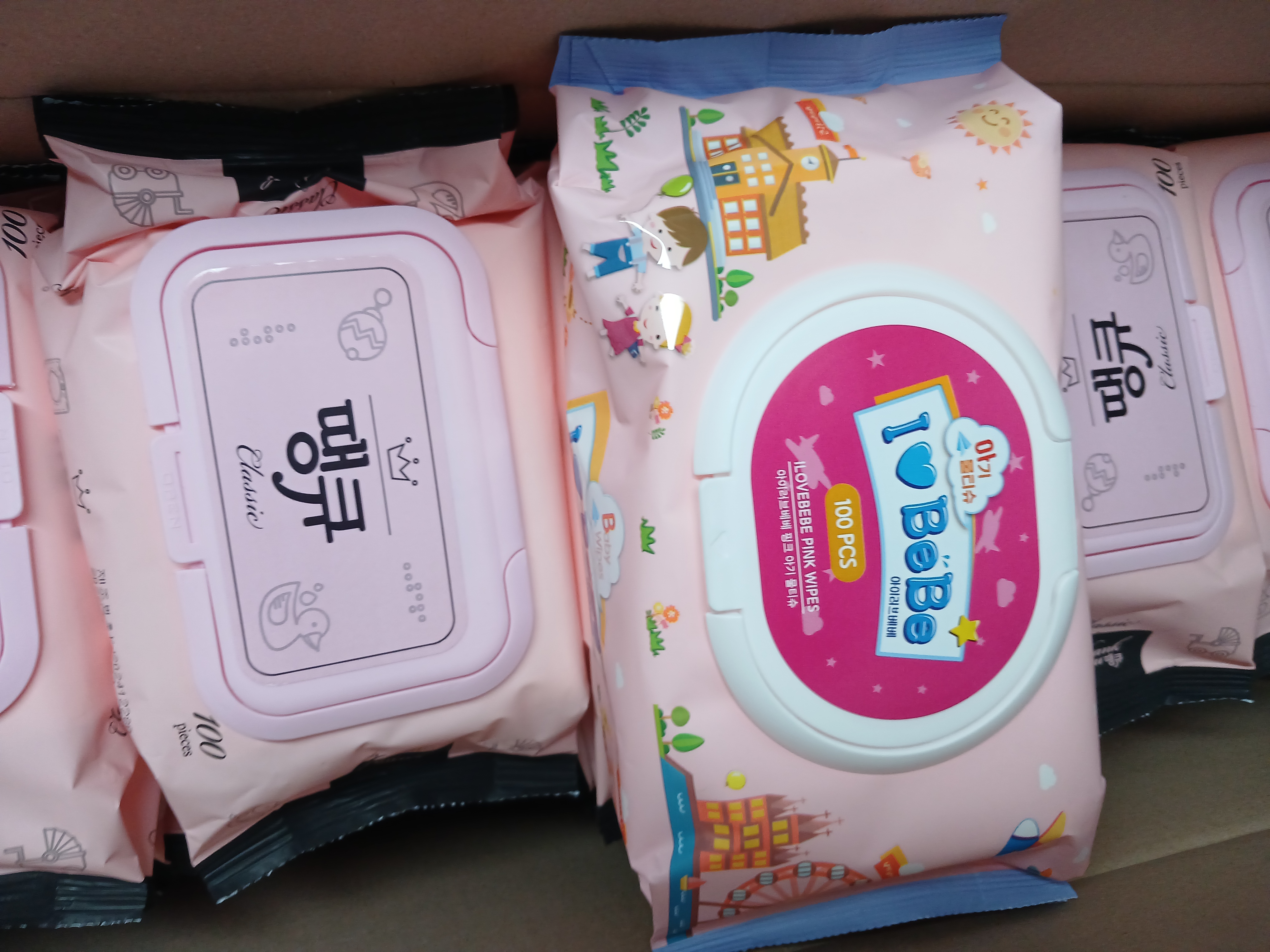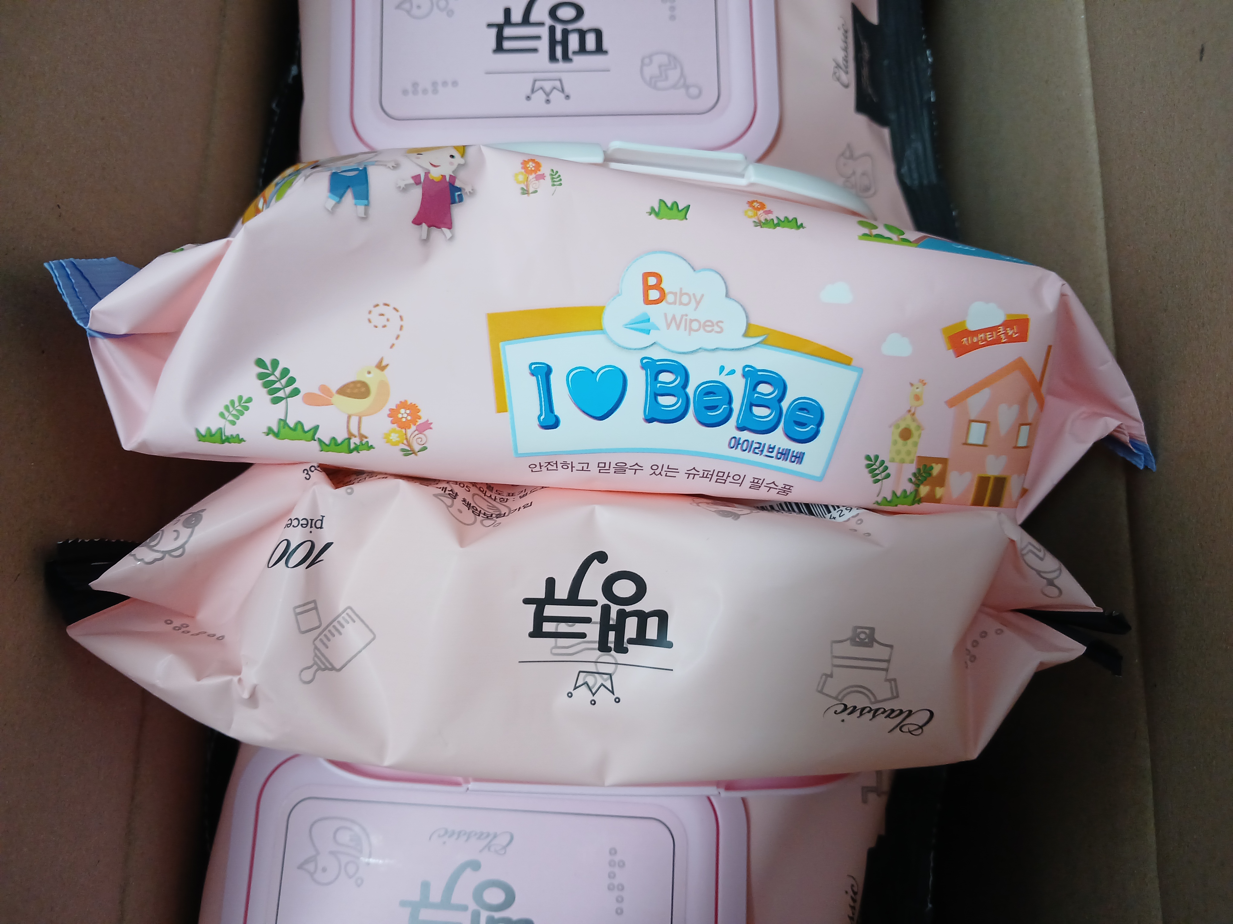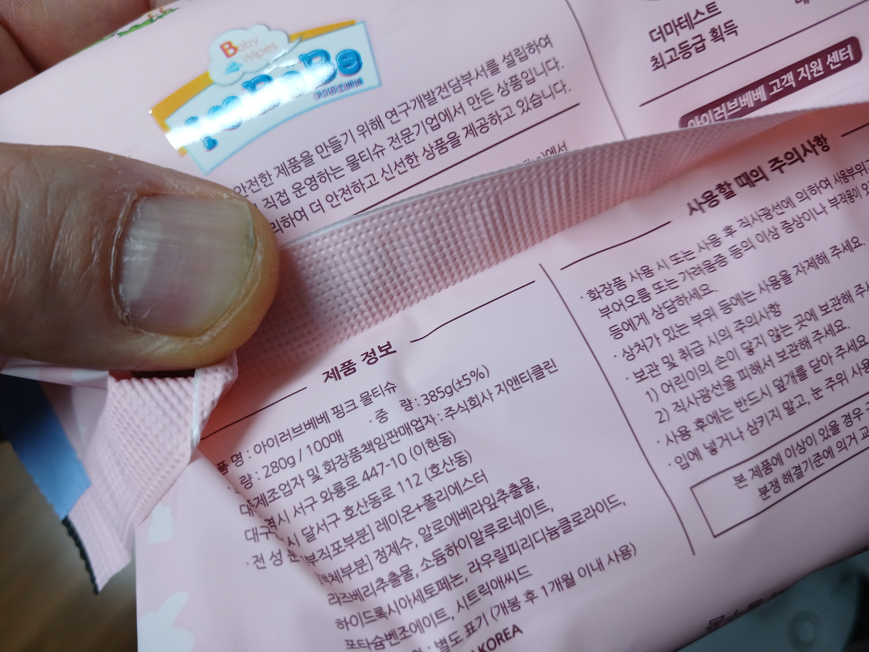기존에 구입했던 이이러브베베 물티슈와 땡큐 물티슈는 1팩에 100매짜리로 동일 규격 같지만 사이즈 차이가 상당하다. 아이러브베베가 더 비싸다.