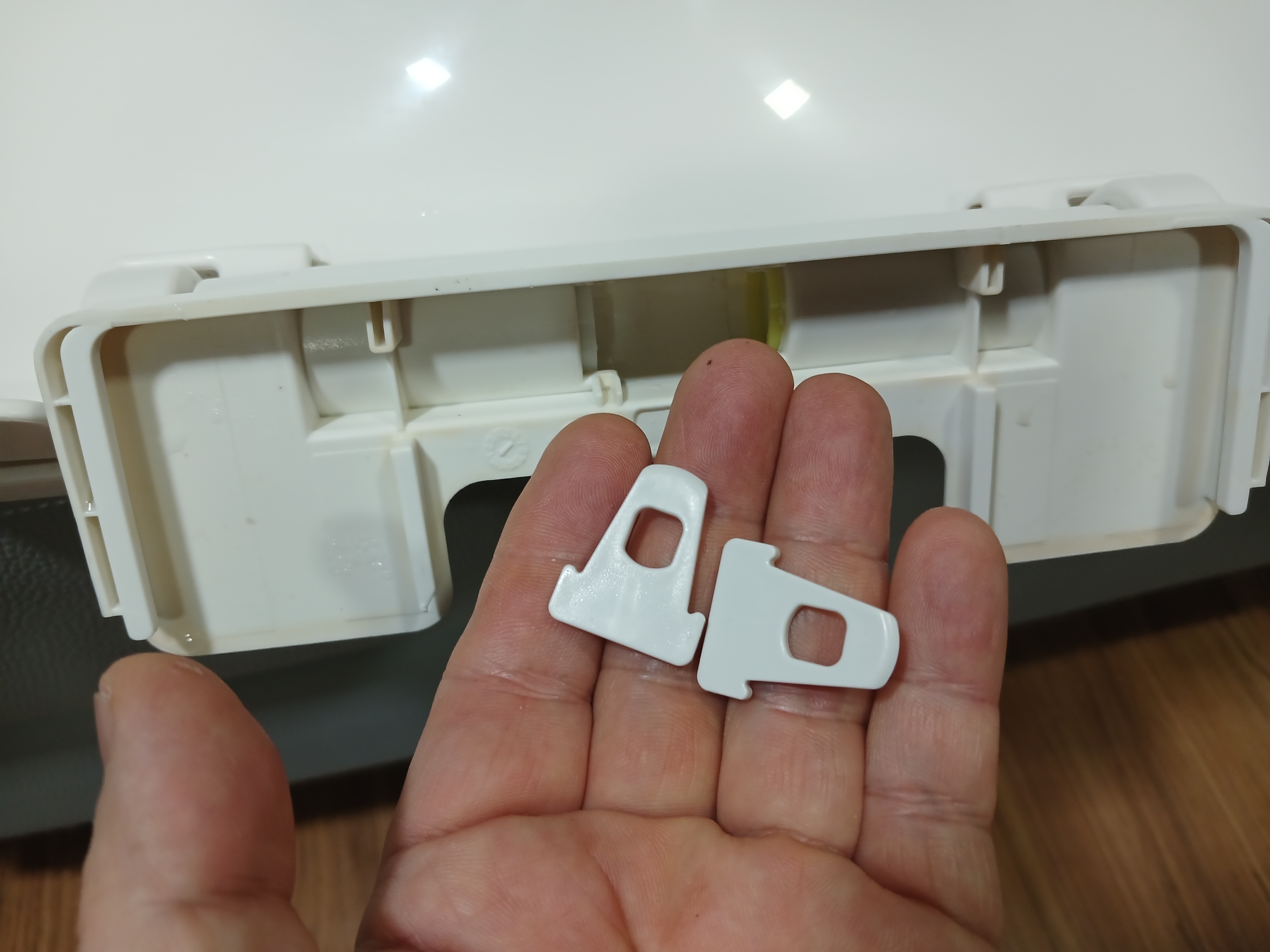 칸막이 2개를 제거했다. 이 칸막이가 시트와 뚜껑을 이어주는 부품이 빠지는 것을 막아준다.